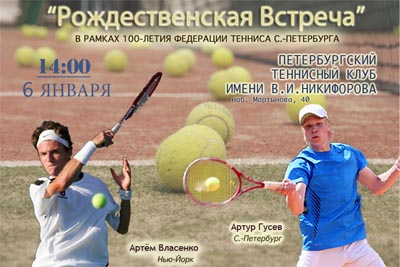6 января в 14.00 в Петербургском теннисном клубе им. В.И. Никифорова (набережная Мартынова, 40) состоится встреча теннисистов города, посвященная началу юбилейного года – года 100-летия Федерации тенниса Санкт-Петербурга.